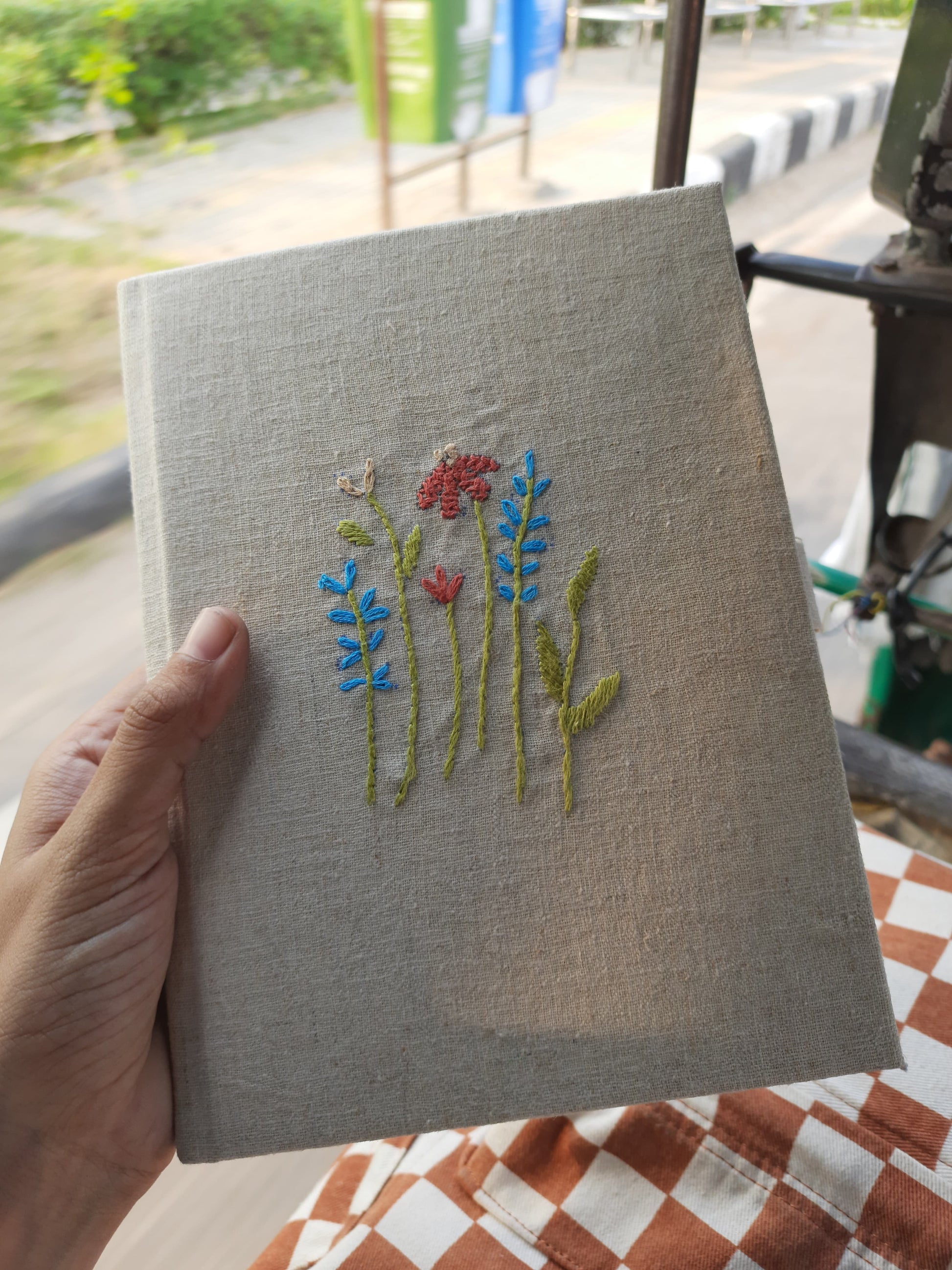 This journal is more than just a place to write; it's a testament to mindful creation. The pages are lovingly made by recycling cotton scraps, giving new life to textile remnants. The cover is crafted from unique upcycled fabric scraps, each one hand-embroidered with delicate designs, making every journal a one-of-a-kind piece of art.