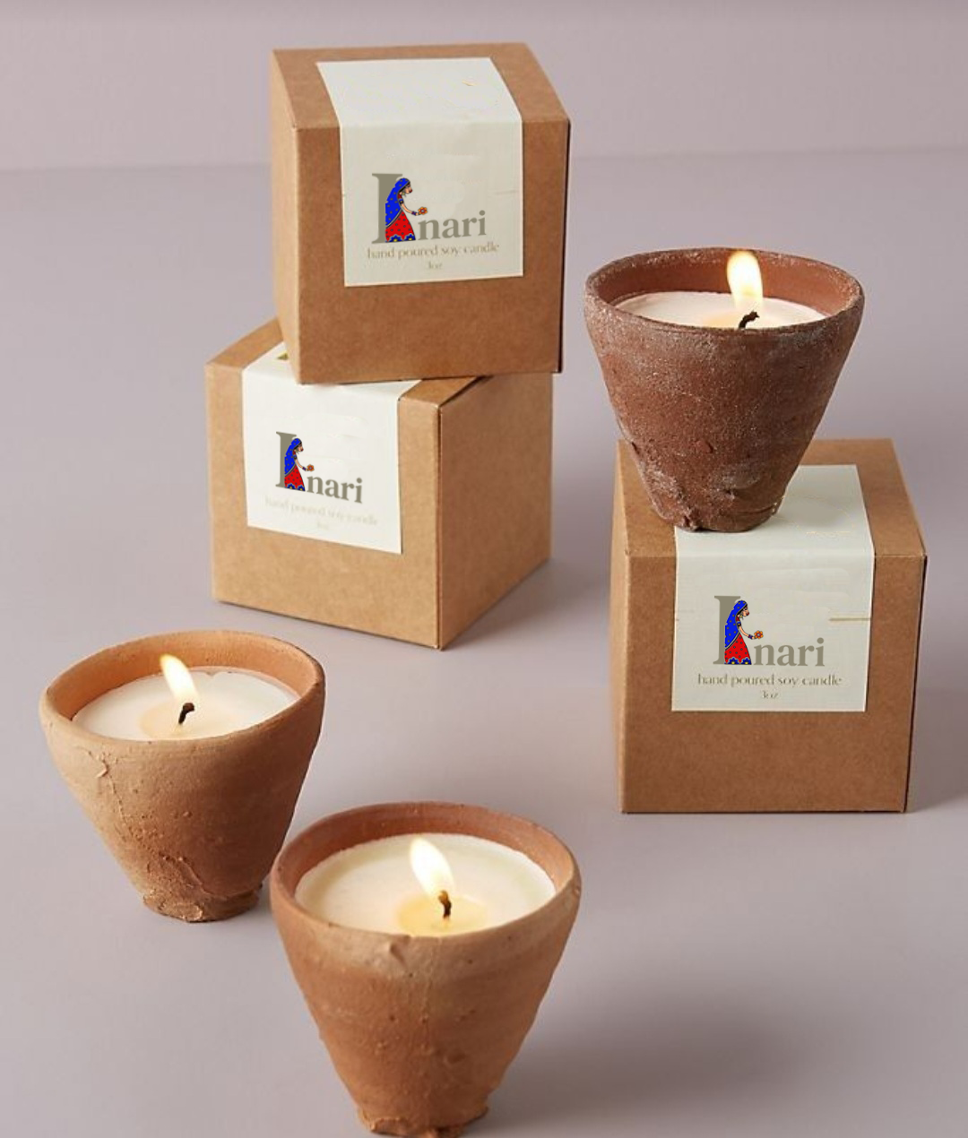Crafting Techniques: Hand-pouring of soy wax into kulhad containers.