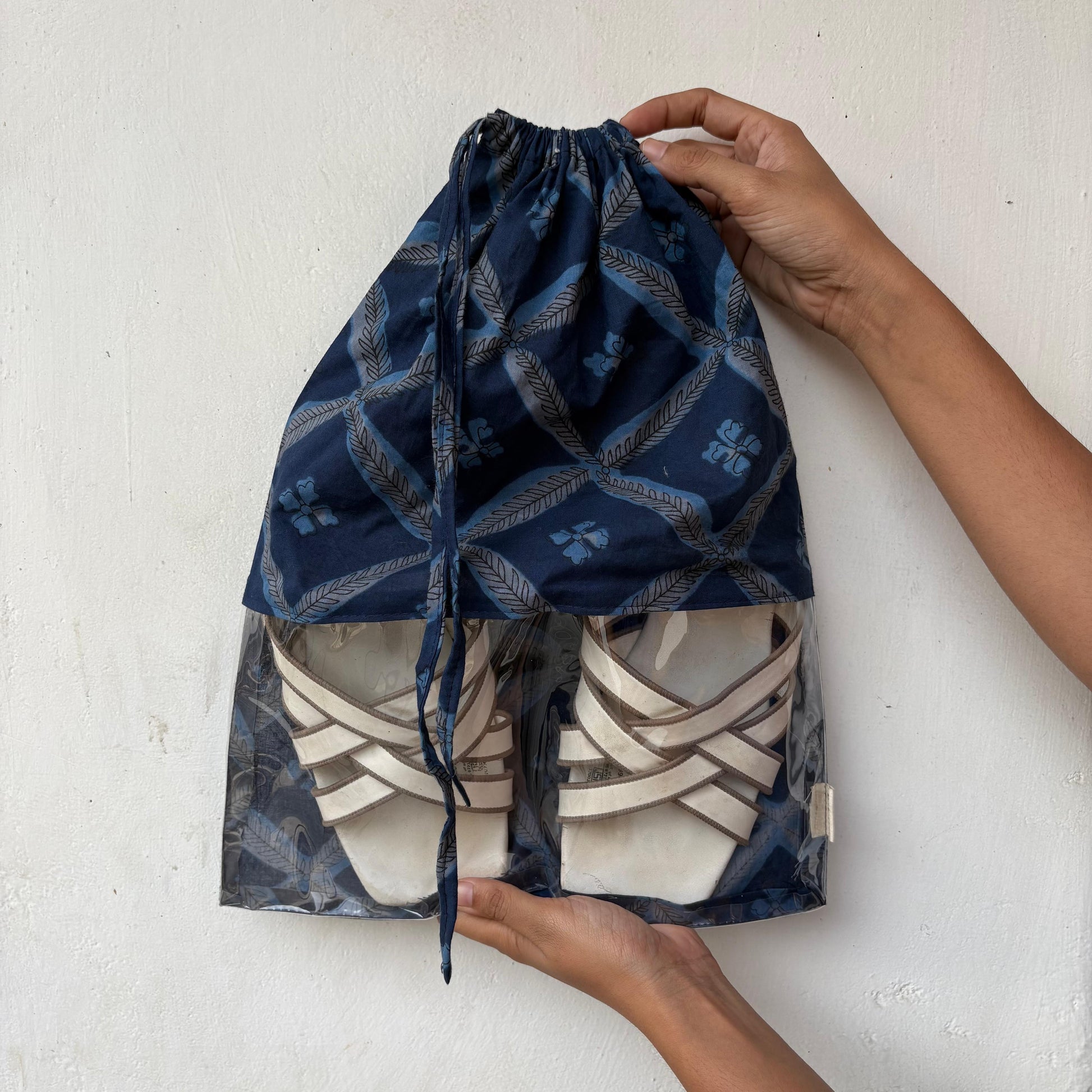Organize and protect your shoes sustainably with our handmade drawstring kit! Perfect for travel and home storage.!